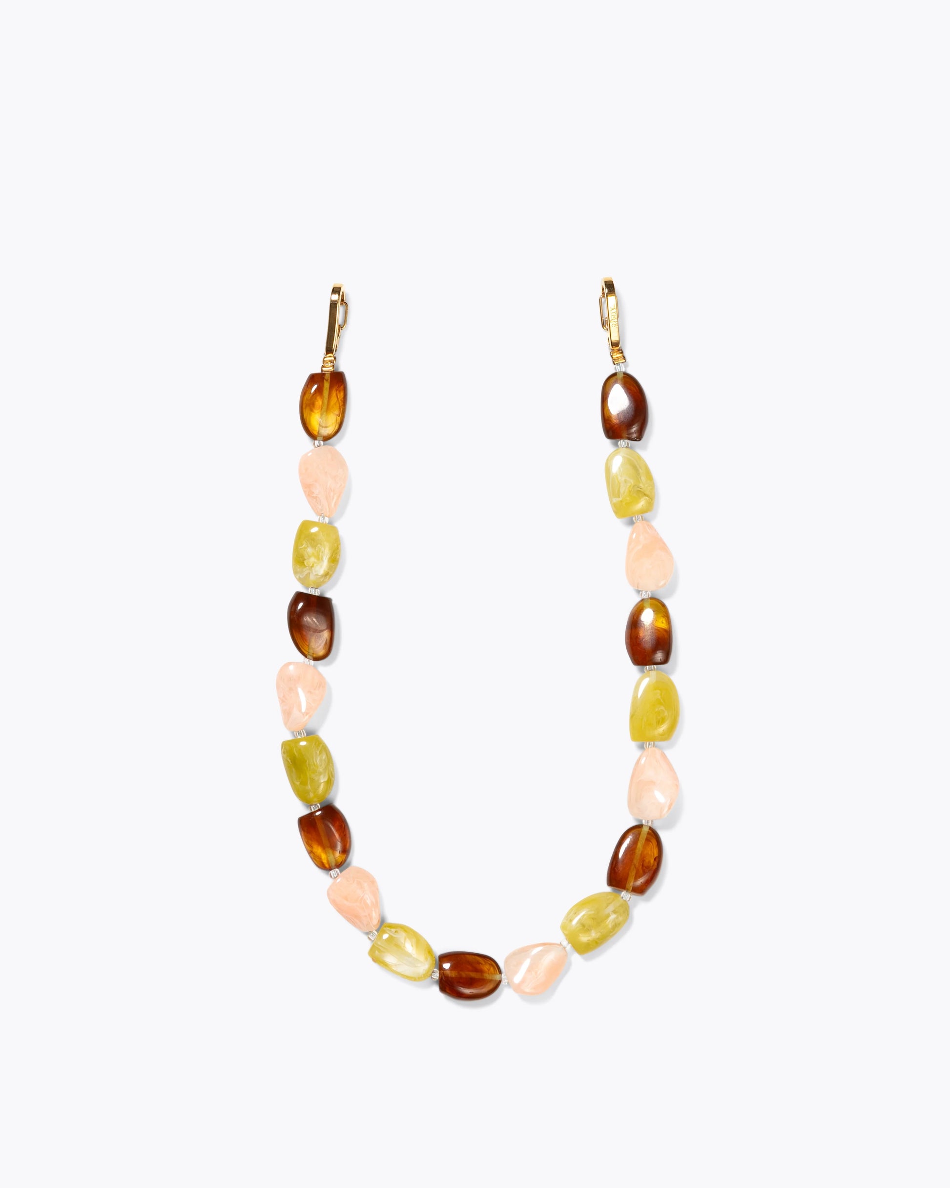 Meet the cord that’s all about effortless movement. The Sway Cord blends soft, earthy tones with organic bead shapes that feel both grounded and playful—think mossy greens, warm neutrals, and subtle pops that keep things interesting. It’s relaxed without being boring, polished without trying too hard, and finished with gold clasps for that just-right touch of shine.