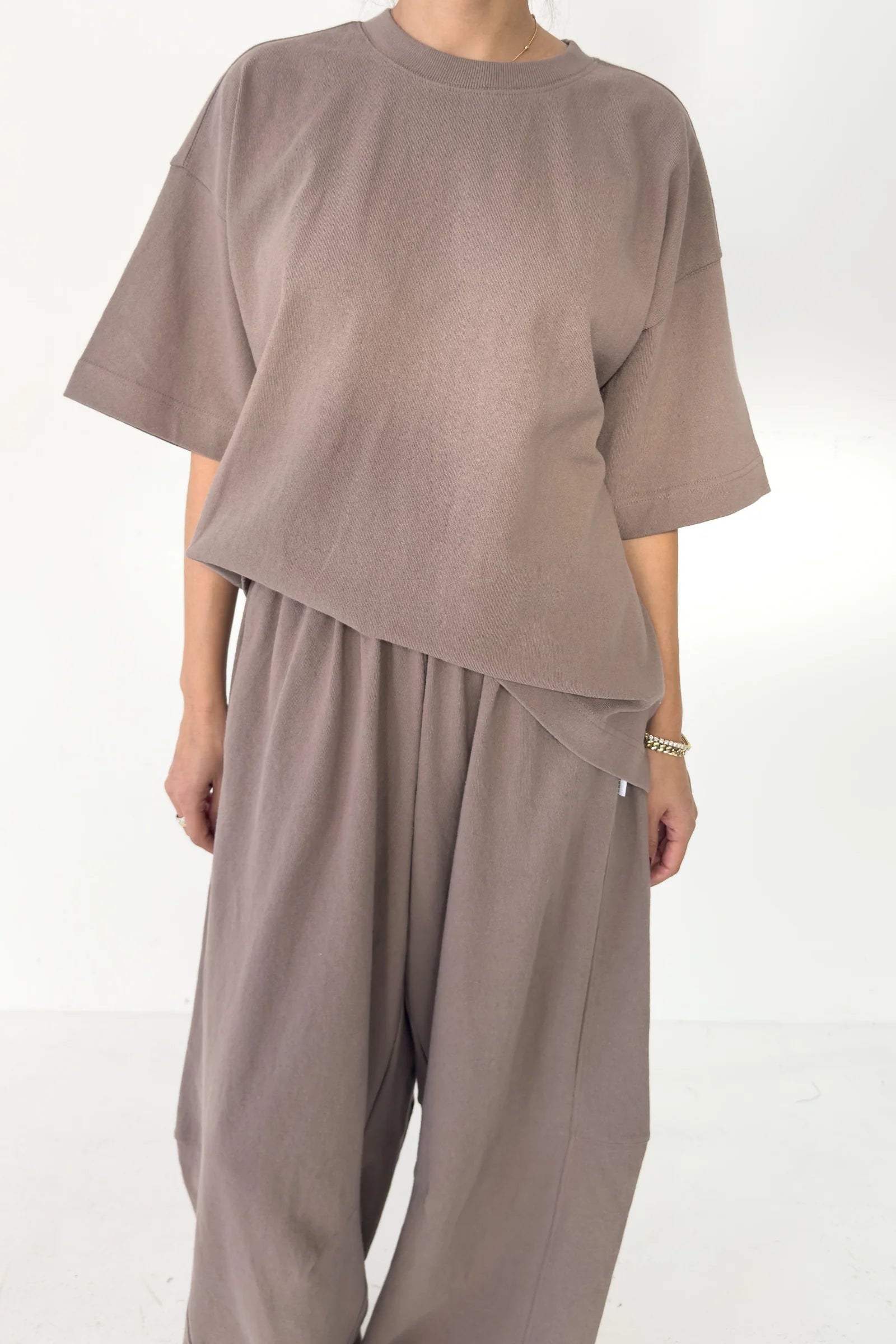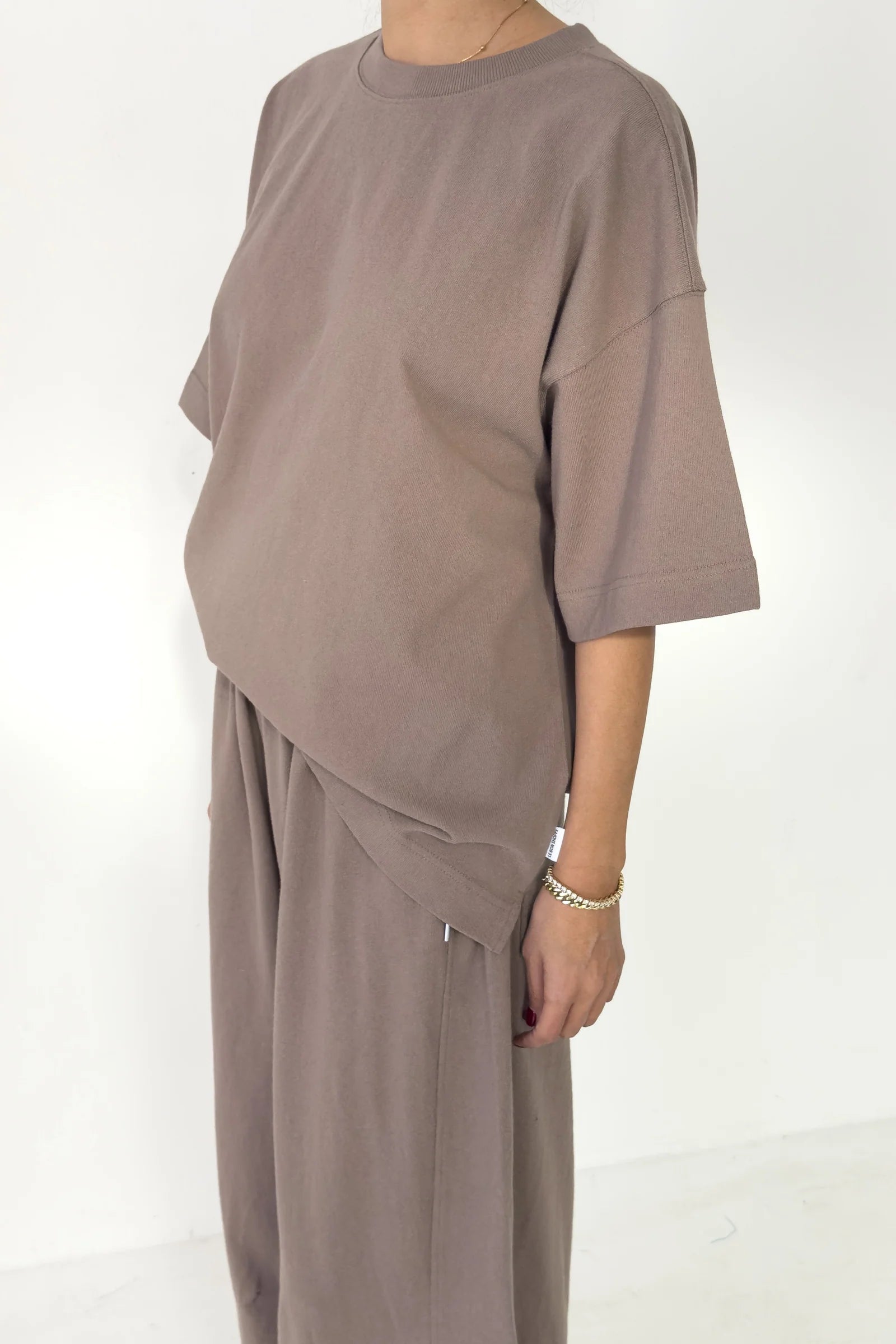 Designed for low-effort days, beach moments, or styled with the Bare Pants for a more elevated lounge look, it’s equal parts laid-back and intentional. The mushroom shade is a warm, earthy neutral that pairs beautifully with denim, tonal knits, and soft creams.