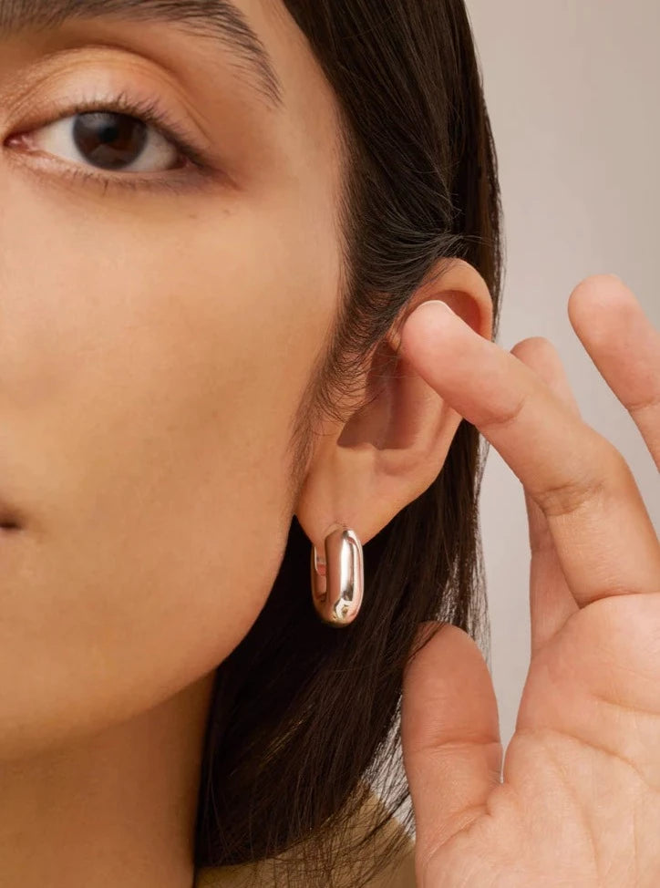 A fresh take on our best selling U-Link Earrings, in a scaled down version. The custom U-Link shape was given a puffy upgrade for more volume and shine, making for an ultra wearable earring. They open and close with a hinge, so you’ll never have to search for an earring back again. To wear, lift post and gently push into opening. Finished in high-polish silver.