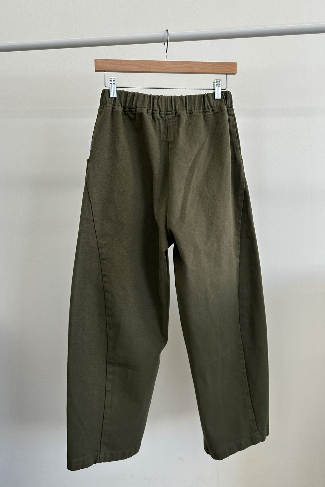 These are the pants we love to live in! She has thoughtful design details like an elastic high waist that gives you a room to breath, slightly curved leg shape, cropped length to show off your favorite socks and shoes, unique side panels and deep pockets. The heavy-weight canvas material likely adds durability and gives them a structured look. The Arc pants would make a great addition to everyone's wardrobe and complement to all the Le Bon Shoppe pieces you own!