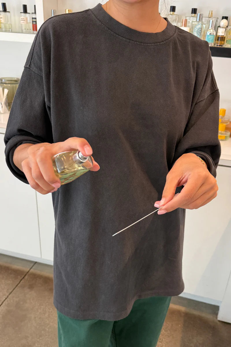 The Sunday Tee – Almost Black is inspired by the classic long-sleeve tee from menswear, reimagined with a touch of Le Bon Shoppe flair. A subtle high side slit transforms the everyday into effortless: roll up the sleeves, tuck it into Balloon Pants, or wear it over a swimsuit as a chic cover-up. Made from heavyweight 100% low-gauge cotton—which results in natural variations and a luxuriously soft feel—it’s your closet’s quietly stylish workhorse.