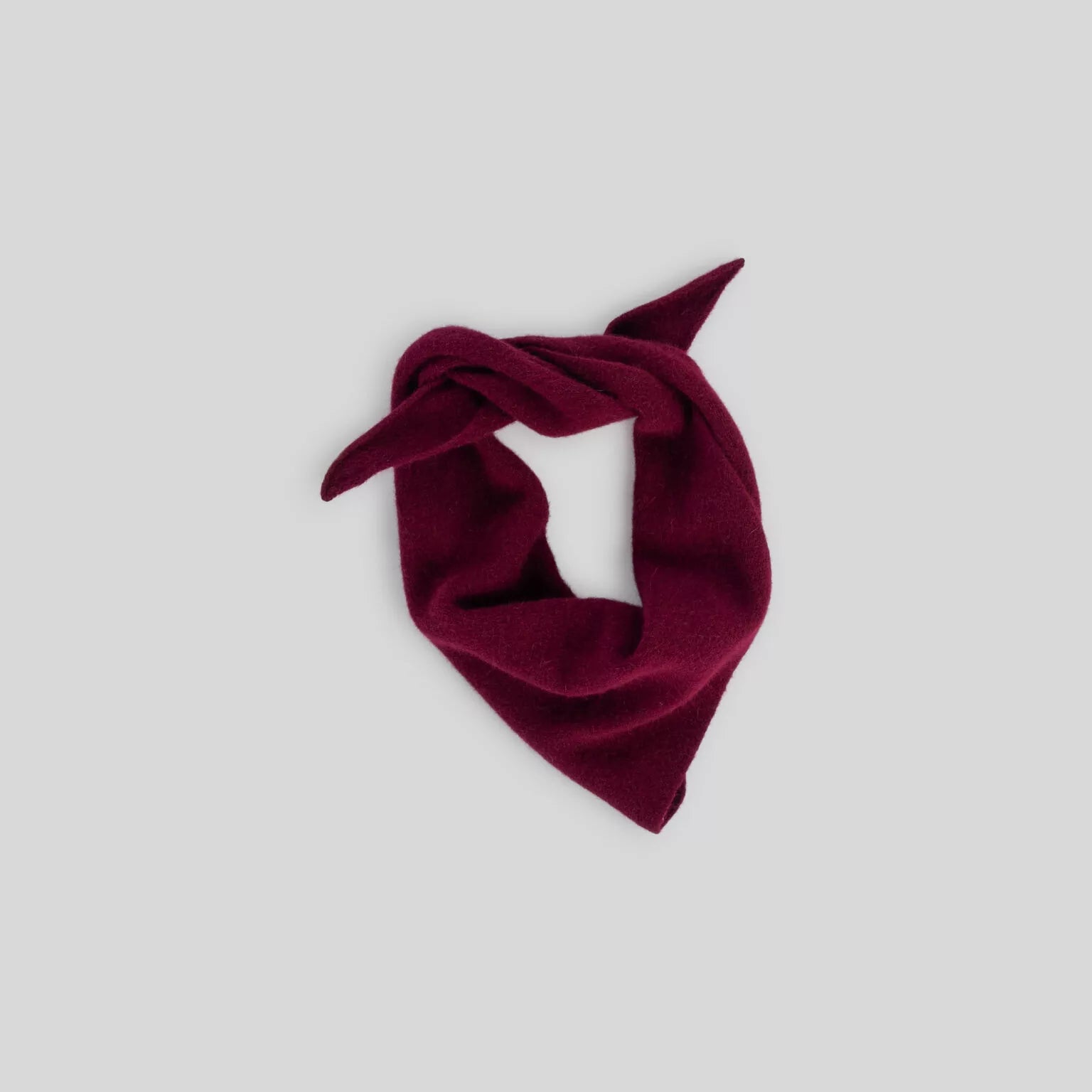 A refined knit bandana crafted in Scotland from soft lambswool and sustainable fibres. Lightweight, airy, and effortlessly wearable — the wine hue adds quiet depth and warmth to any look. Tie it loosely at the neck, knot it as a head scarf, or layer under a coat for a subtle touch of colour.