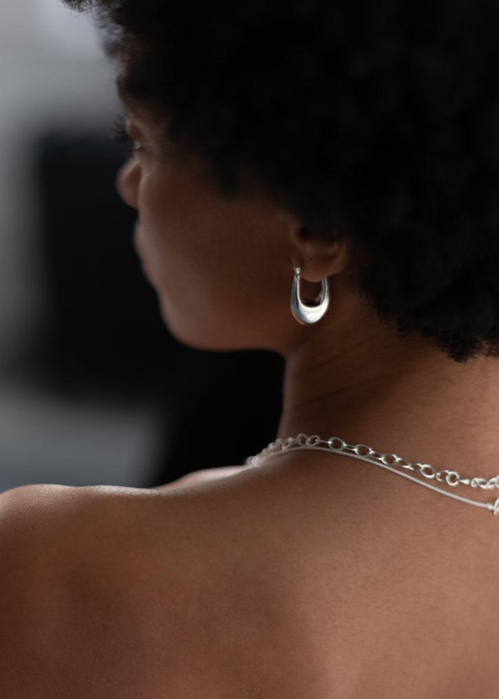 Our Emmeline Hoops features an oval form with soft lines and a slightly abstract shape. A classic silhouette with a modern twist these earrings work for any occasion from day to night.