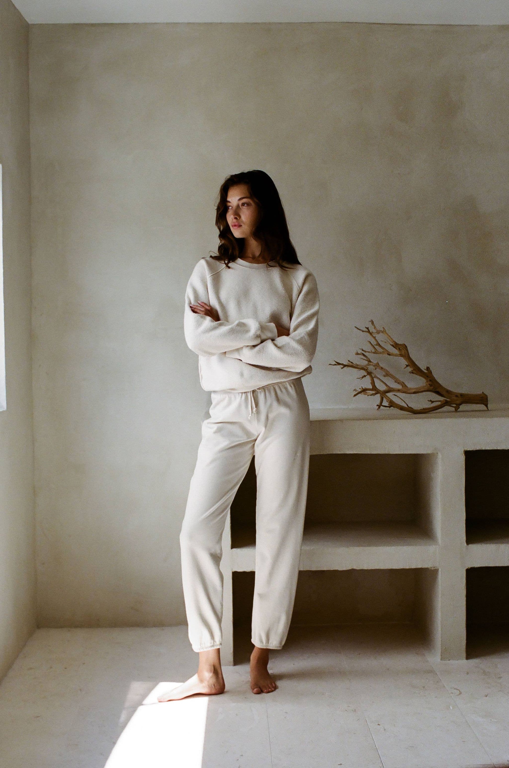 This light weight pullover is not just your average sweatshirt. Made to be worn 'inside out' the super soft terry adds a unique texture looked, while the garment washed gotten gives it an extra soft and drapey feel and look.