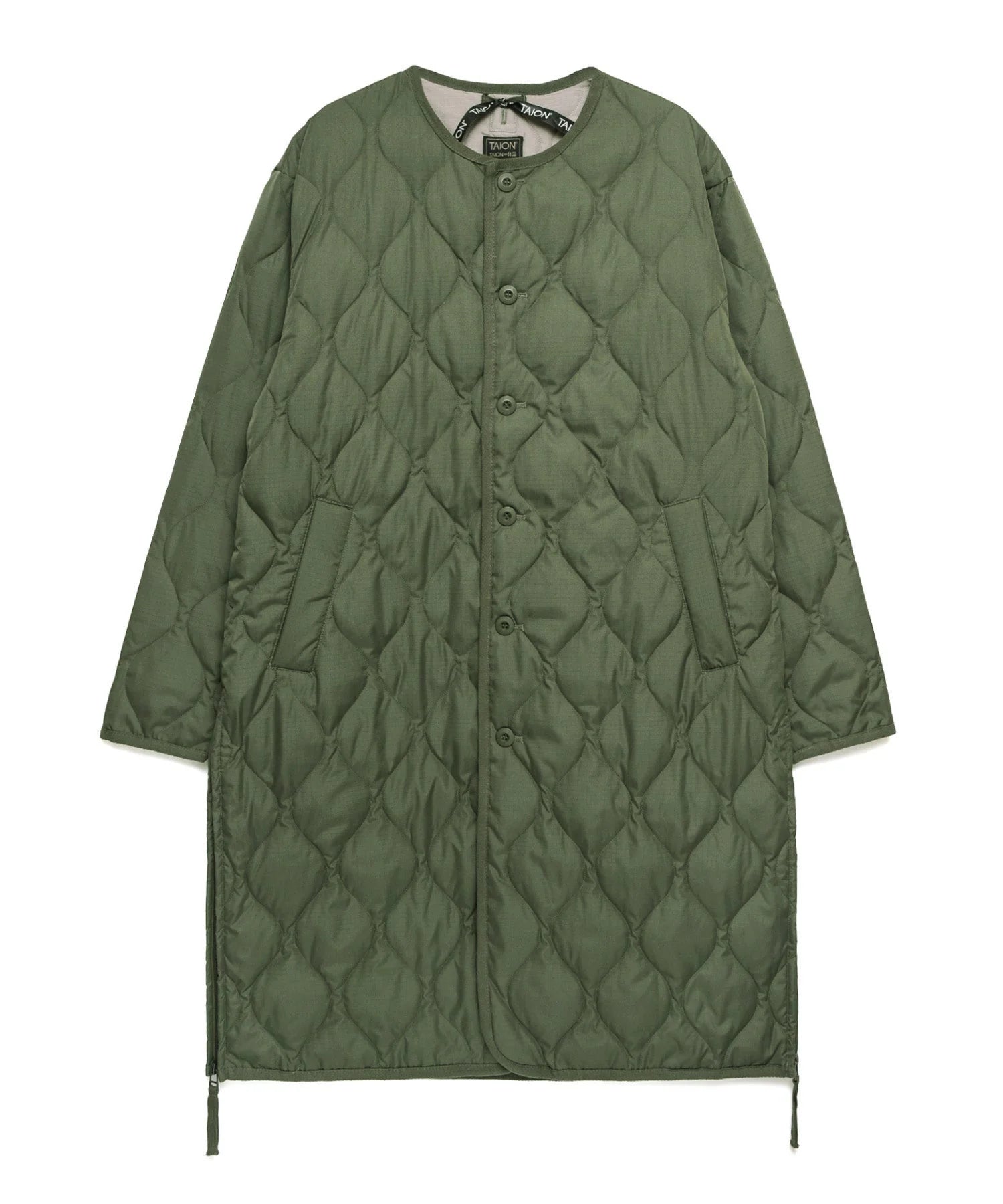 Taion Long Military Crew Neck Quilted Coat - Olive
