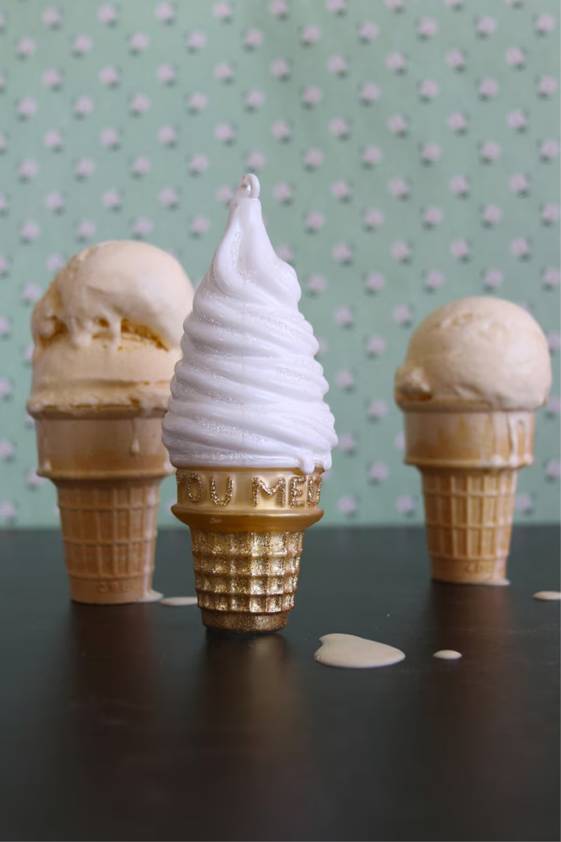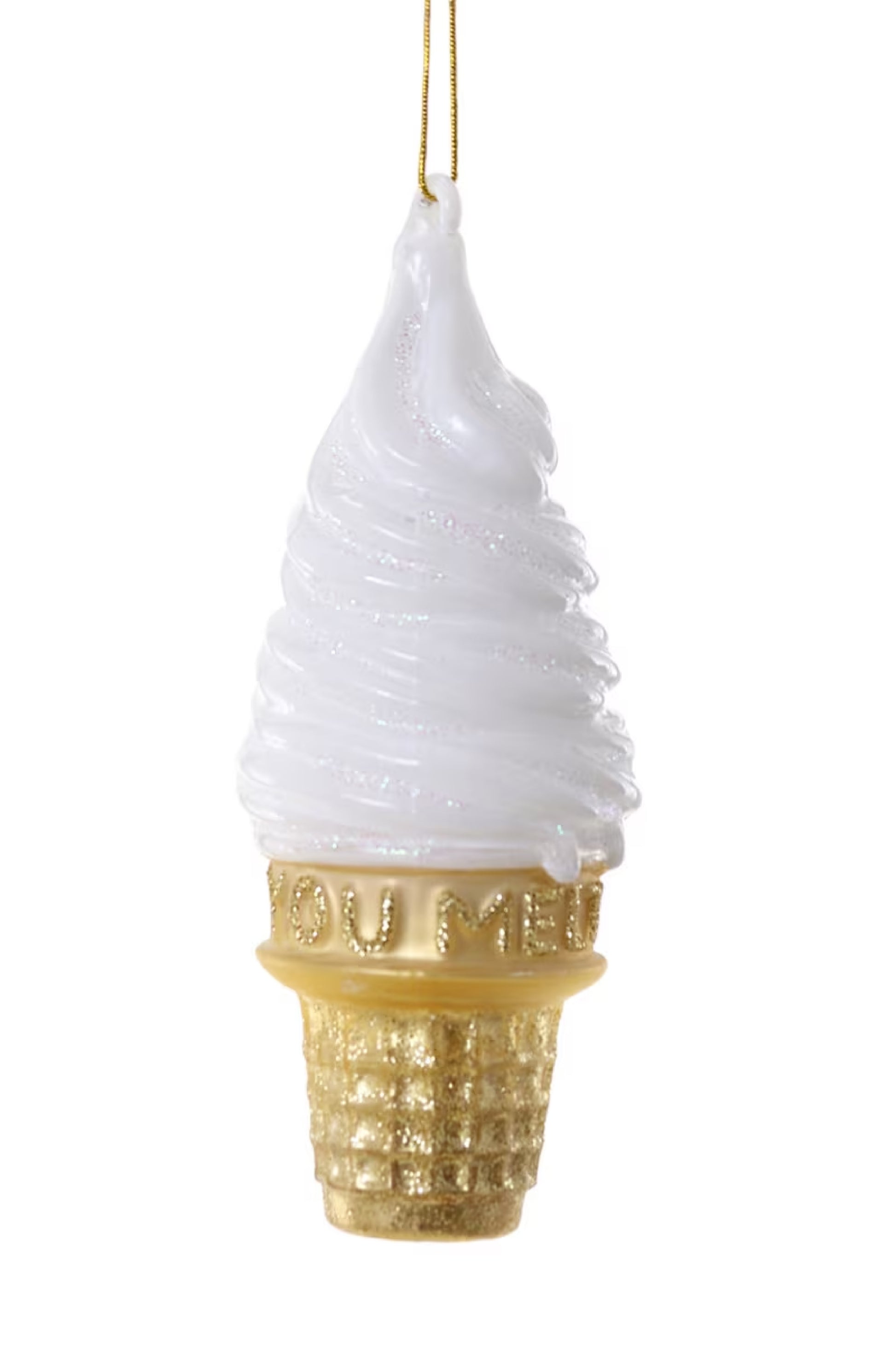 Fro-yo, or soft serve - whatever your sweettooth/sweetheart desires! This iconic desert cone featuring 'you melt my heart' is by far he sweetest addition to any tree.